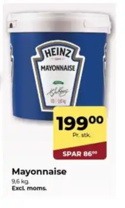 2Dagrofa Food Service HEINZ Mayonnaise tilbudHEINZ Mayonnaise 9/6 kgDagrofa Food Service285,00 kr.199,00 kr.86,00 kr. Rabat01 marts 202631 marts 2026 Se tilbud