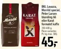 | Formalet kaffe (BKI, Lavazza, Merrild, Karat) 150-400 g | Føtex | 45,00 kr. | 01 maj 2026 | 13 maj 2026 | |||