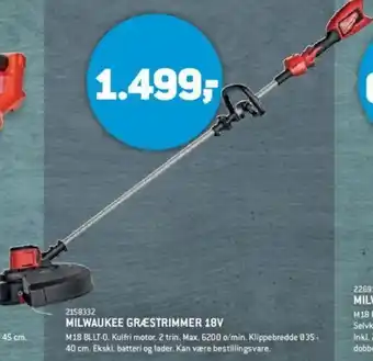 | Milwaukee Græstrimmer 18V 35-40 cm | XL-BYG | 1,50 kr. | 29 april 2022 | 12 maj 2022 |