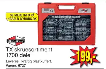 | MITSUTOMO TX skruesortiment 1700 dele | Harald Nyborg | 225,00 kr. | 24 april 2025 | 30 april 2025 | |||