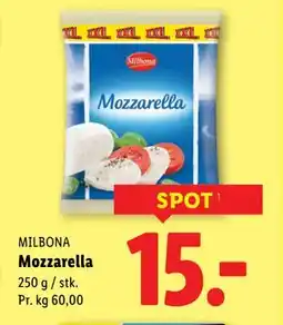 Lidl MILBONA Økologisk revet mozzarella tilbudMILBONA Økologisk revet mozzarella 150 gLidl10,00 kr.49%28 december 202510 januar 2026