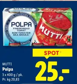 1Lidl MUTTI Polpa tilbudMUTTI Polpa 3 x 400 gLidl25,00 kr.29 januar 202601 februar 2026 Se tilbud