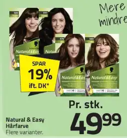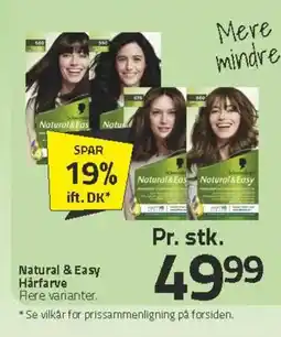 Denne uge finder du flere tilbud på Natural hos blandt andet Fleggaard og andre store kæder. Der er kampagner som 25 procent rabat, op til 40 procent besparelse eller ekstra lave priser på Natural & Easy Hårfarve, Natural & Easy Hårfarve og Natural Tabs Vaskemiddel. Du kan filtrere efter type, størrelse eller forhandler.