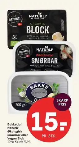 | Bakkedal, Naturli' Økologisk Smørbar eller Vegan Blok | SPAR | 15,00 kr. | 30 maj 2025 | 05 juni 2025 | |||