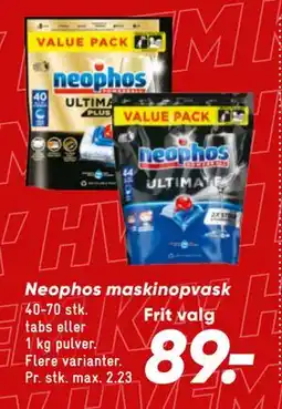| Neophos maskinopvask-tabs | Bilka | 85,00 kr. | 01 april 2023 | 30 april 2023 | |||