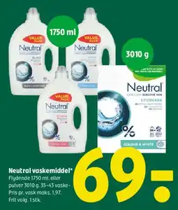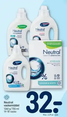 Der er 10 tilbud på Neutral med filteret Vaskemiddel tilgængelige fra 18.04.2026. Fjern filtrene for at se alle kampagner på Neutral.