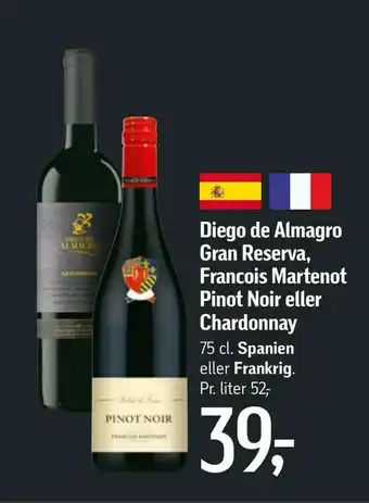 | Diego de Almagro Gran Reserva, Francois Martenot Pinot Noir eller Chardonnay | Føtex | 39,00 kr. | 22 oktober 2021 | 28 oktober 2021 | |||