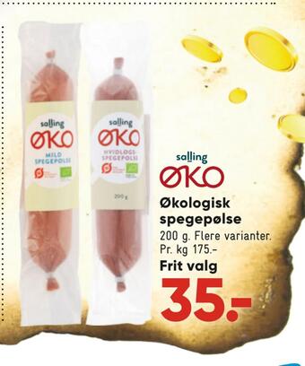 | Økologisk spegepølse | Bilka | 35,00 kr. | 07 marts 2025 | 13 marts 2025 | |||