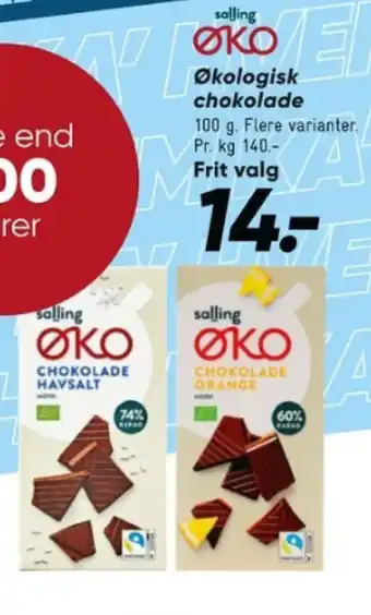 | Økologisk chokolade | Bilka | 14,00 kr. | 09 maj 2024 | 16 maj 2024 | |||