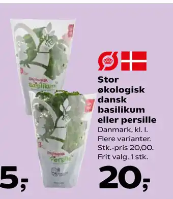 | Stor økologisk dansk basilikum eller persille | Kvickly | 20,00 kr. | 31 maj 2024 | 06 juni 2024 | |||