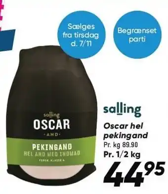 Bilka Oscar hel fersk pekingand, DKK 39.95 tilbudOscar hel fersk pekingand, DKK 39.95Bilka39,95 kr.07 november 202513 november 2025