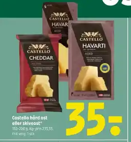 | Castello hård ost eller skiveost 150-200 g | Coop 365 | 35,00 kr. | 12 februar 2026 | 18 februar 2026 | |||