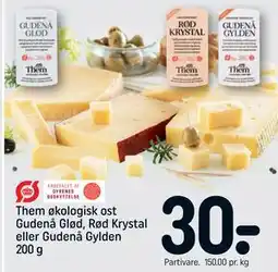 | Them økologisk Rød Krystal ost, Gudenå Gylden ost eller Gudenå Glød ost 200-225 g, DKK 35 | REMA 1000 | 35,00 kr. | 09 november 2025 | 15 november 2025 | |||