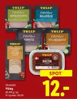 8Lidl TULIP Pålækker Pålæg tilbudTULIP Pålækker Pålæg 80 - 200 gLidl12,00 kr.18 januar 202624 januar 2026 Se tilbud