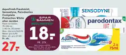 SPAR Aquafresh Freshmint, Sensodyne, Parodontax Complete Protection White eller Jordan tilbud