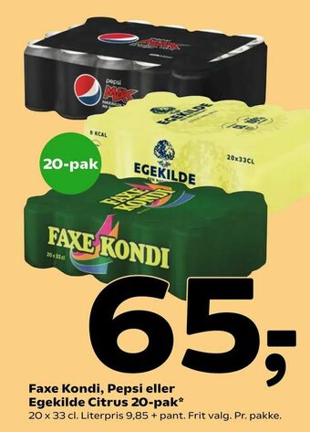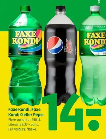 | FAXE KONDI eller Pepsi Max 50-150 cl | Coop 365 | 16,00 kr. | 13 november 2024 | 20 november 2024 | |||