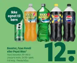 | Booster, Faxe Kondi eller Pepsi Max 50-150 cl | Coop 365 | 12,00 kr. | 18 december 2025 | 26 december 2025 | |||