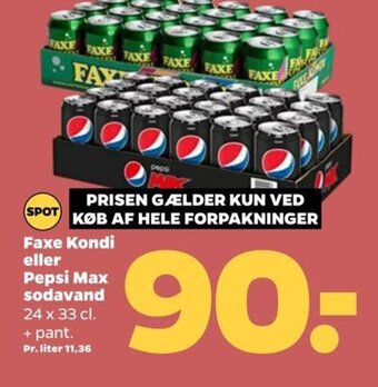 | Faxe Kondi eller Pepsi Max sodavand 24 x 33 cl. + pant. | Netto | 79,00 kr. | 30 september 2023 | 06 oktober 2023 | |||