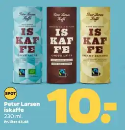 | Peter Larsen Økologisk Iskaffe 230ml | Netto | 10,00 kr. | 30 april 2022 | 06 maj 2022 | |||