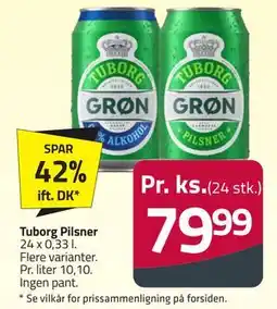 Let-Køb GRØN TUBORG, TUBORG CLASSIC ELLER CARLSBERG PILSNER tilbudGRØN TUBORG, TUBORG CLASSIC ELLER CARLSBERG PILSNER 30 x 33 cl.Let-Køb135,00 kr.15 december 202523 december 2025