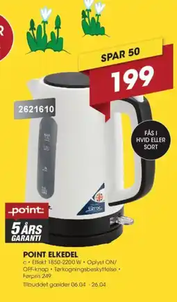 | 1 | Point elkedel | Punkt1 | 249,00 kr. | 199,00 kr. | 50,00 kr. Rabat | 06 april 2026 | 26 april 2026 | Se tilbud | |