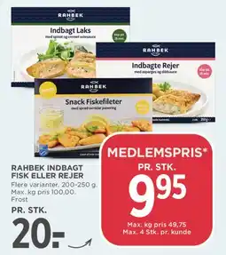 2MENY Rahbek Indbagt Fisk eller Rejer tilbudRahbek Indbagt Fisk eller Rejer 200-250 gMENY9,95 kr.24 april 202630 april 2026 Se tilbud