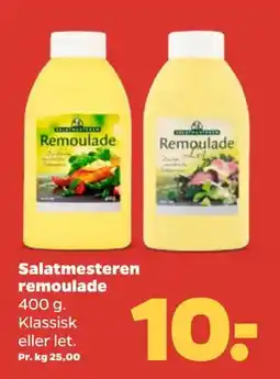 1Netto Salatmesteren remoulade tilbudSalatmesteren remoulade 400 gNetto10,00 kr.28 februar 202606 marts 2026 Se tilbud