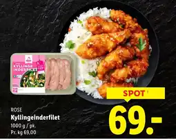 | 1 | ROSE Kyllingeinderfilet 1000 g | Lidl | 69,00 kr. | 08 marts 2026 | 14 marts 2026 | Se tilbud | |||