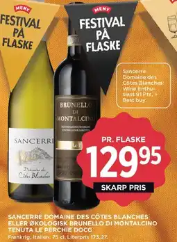 MENY Sancerre domaine des côtes blanches eller økologisk brunello di montalcino tenuta le perchie docg tilbud