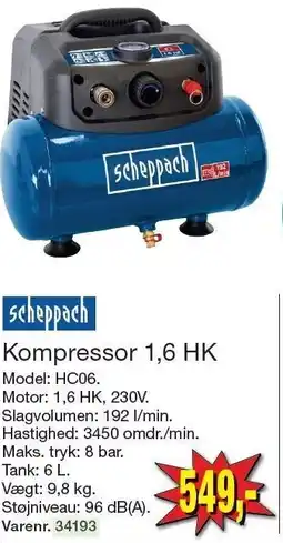 | SCHEPPACH Kompressor 1,5 HK | Harald Nyborg | 1.199,00 kr. | 08 maj 2025 | 14 maj 2025 | |||