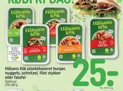 REMA 1000 Hälsans Kök plantebaseret burger, nuggets, schnitzel, filet stykker eller falafel tilbud