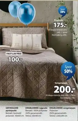| ENGBLOMME SENGETÆPPE | JYSK | 399,00 kr. | 250,00 kr. | 149,00 kr. Rabat | 09 maj 2024 | 21 maj 2024 | |