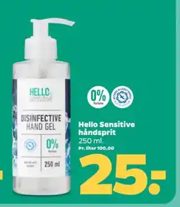 | Hello Sensitive håndsprit 250 ml | Netto | 25,00 kr. | 24 januar 2026 | 31 januar 2026 | |||