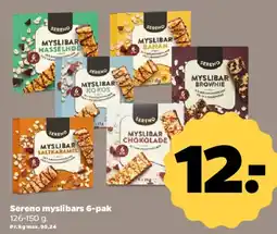 | Sereno myslibars 6-pak 150 g | Netto | 12,00 kr. | 16 november 2024 | 22 november 2024 | |||