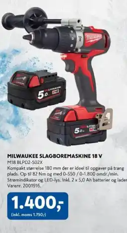 | Milwaukee Slagboremaskine 18V | Davidsen | 1.796,00 kr. | 10 november 2022 | 31 december 2022 | |||