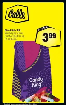 Calle BLAND SELV SLIK Pr. 100 g tilbudBLAND SELV SLIK Pr. 100 gCalle3,99 kr.05 marts 202518 marts 2025