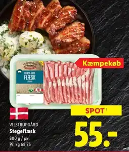 | 3 | VILSTRUPGÅRD Stegeflæsk 800 g | Lidl | 55,00 kr. | 22 februar 2026 | 01 marts 2026 | Se tilbud | |||
