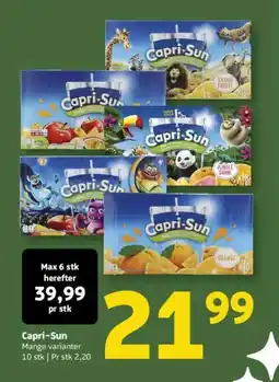 | 1 | Capri-Sun 10 stk. | Løvbjerg | 21,99 kr. | 19 december 2025 | 23 december 2025 | Se tilbud | |||