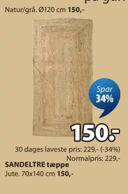 | SANDELTRE tæppe 1 stk. | JYSK | 346,97 kr. | 229,00 kr. | 117,97 kr. Rabat | 27 februar 2026 | 12 marts 2026 | |