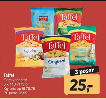 | Taffel chips eller snacks 110-175 g | REMA 1000 | 7,00 kr. | 11 december 2025 | 13 december 2025 | |||