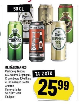 | Carlsberg, tuborg, kronenbourg el. grimbergen flere varianter 300-660 cl | Løvbjerg | 89,99 kr. | 24 oktober 2025 | 30 oktober 2025 | |||