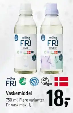 10Føtex Salling Fri Vaskemiddel tilbudSalling Fri Vaskemiddel 750 mlFøtex18,00 kr.16 januar 202629 januar 2026 Se tilbud