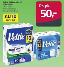 Denne uge finder du flere tilbud på Veltie hos blandt andet Fleggaard og andre store kæder. Der er kampagner som 25 procent rabat, op til 40 procent besparelse eller ekstra lave priser på Veltie køkkenrulle el. toiletpapir, Veltie Køkkenrulle el. Toiletpapir og Børnetrillebør. Du kan filtrere efter type, størrelse eller forhandler.