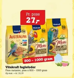 BigDollar Vitakraft Fuglefoder tilbudVitakraft Fuglefoder 1 kgBigDollar30,00 kr.13 marts 202626 marts 2026