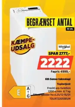 | Whirlpool FreshCare-funktion Topbetjent TDLR7220SSEUN | Power | 4.999,00 kr. | 2.222,00 kr. | SPAR 2777,- | 25 oktober 2025 | 31 oktober 2025 | |