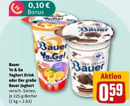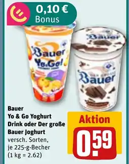 REWE DE Bauer Yo & Go Yoghurt Drink oder Der große Bauer Joghurt tilbud
