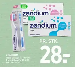 Denne uge finder du flere tilbud på Zendium hos blandt andet MENY og andre store kæder. Der er kampagner som 25 procent rabat, op til 40 procent besparelse eller ekstra lave priser på ZENDIUM, Zendium tandpasta og Zendium mundpleje. Du kan filtrere efter type, størrelse eller forhandler.