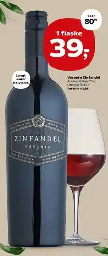 | 1 | Veronia Zinfandel 75 cl | Kvickly | 39,00 kr. | 13 marts 2026 | 19 marts 2026 | Se tilbud | |||